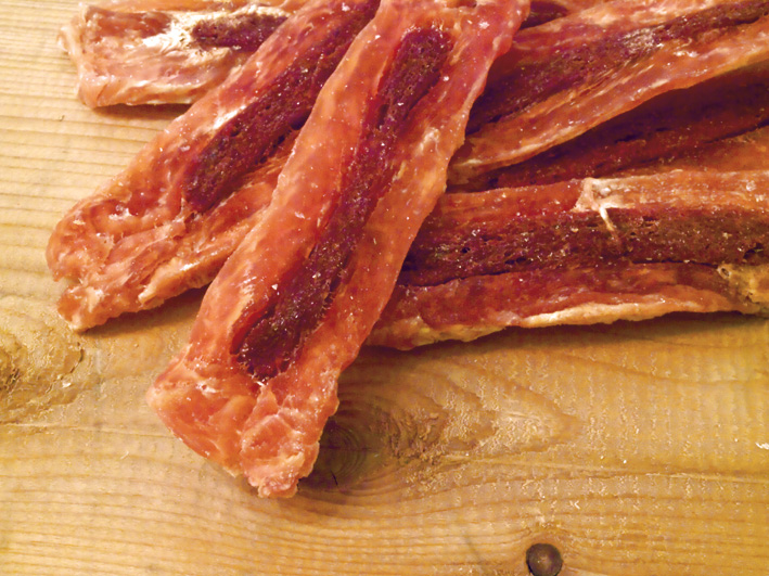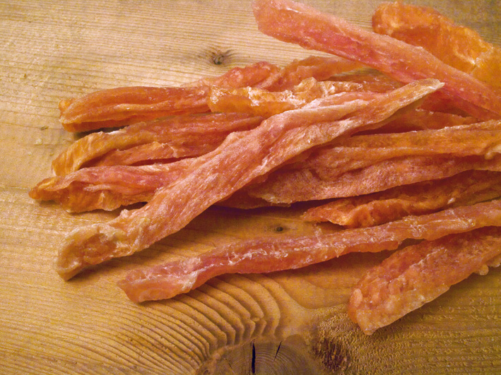 Dieses hochwertige Naturprodukt aus reinem Hühnerbrustfilet ist ein Leckerbissen mit wenig Fett. Überzeugend gehaltvoll und kerngesund. |